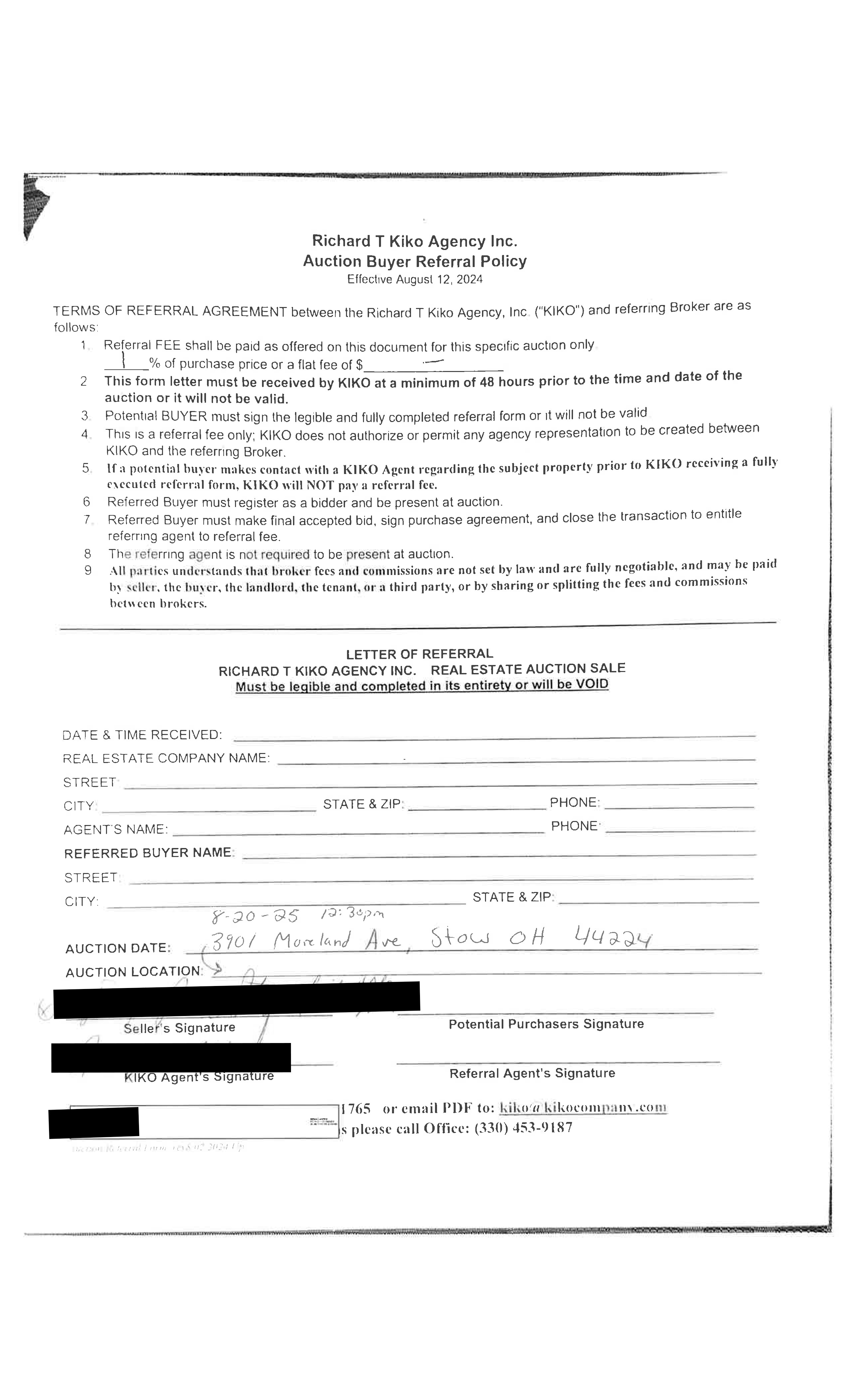 10% down auction day, balance due at closing. A 10% buyer’s premium will be added to the highest bid to establish the purchase price. Any desired inspections must be made prior to bidding. All information contained herein was derived from sources believed to be correct. Information is believed to be accurate but not guaranteed.
